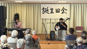 誕生日会の演奏会はご家族も参加されている方もいて、横に寄り添って一緒に聴かれています。