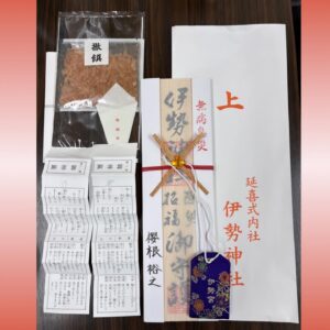 伊勢神社に着くとちょうど業務につかれるタイミングで一枚記念にいただきました📷